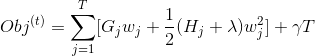 push 到它们所属的叶子上,统计数据加和到一起,然后使用公式计算树是多好。 除了考虑到模型的复杂度,这个分数就像决策树中的杂质测量一样(例如,熵/GINI系数)。