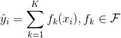上图是两棵树的集成的例子。将每棵树的预测分数加起来得到最终分数。 如果你看一下这个例子,一个重要的事实就是两棵树互相 complement(补充) 。 在数学表示上,我们可以在表单中编写我们的模型。
