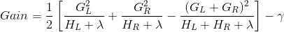 这个公式可以分解为 1) 新左叶上的得分 2) 新右叶上的得分 3) 原始叶子上的得分 4) additional leaf(附加叶子)上的正则化。 我们可以在这里看到一个重要的事实:如果增益小于